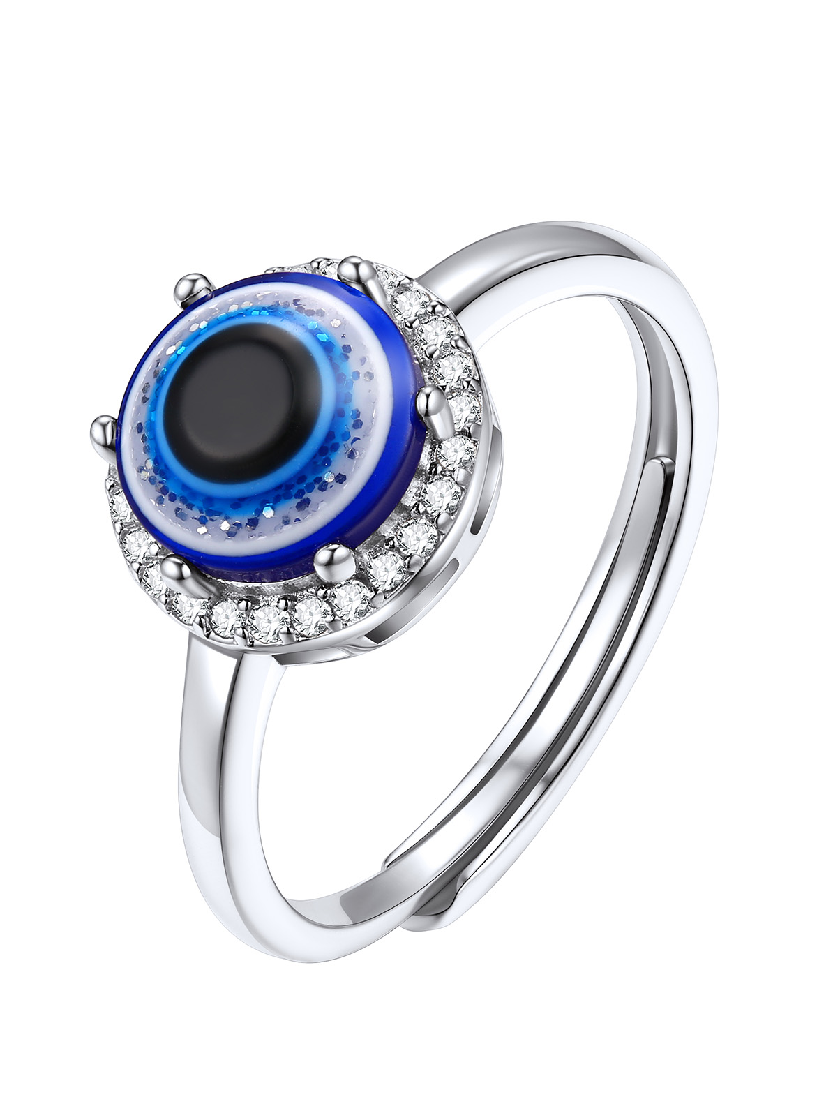 Silvora Cubic Zirconia Evil Eye Rings Women Sterling Silver Rings Open Stacking Band Ring Lucky Statement Jewelry Christmas Gift