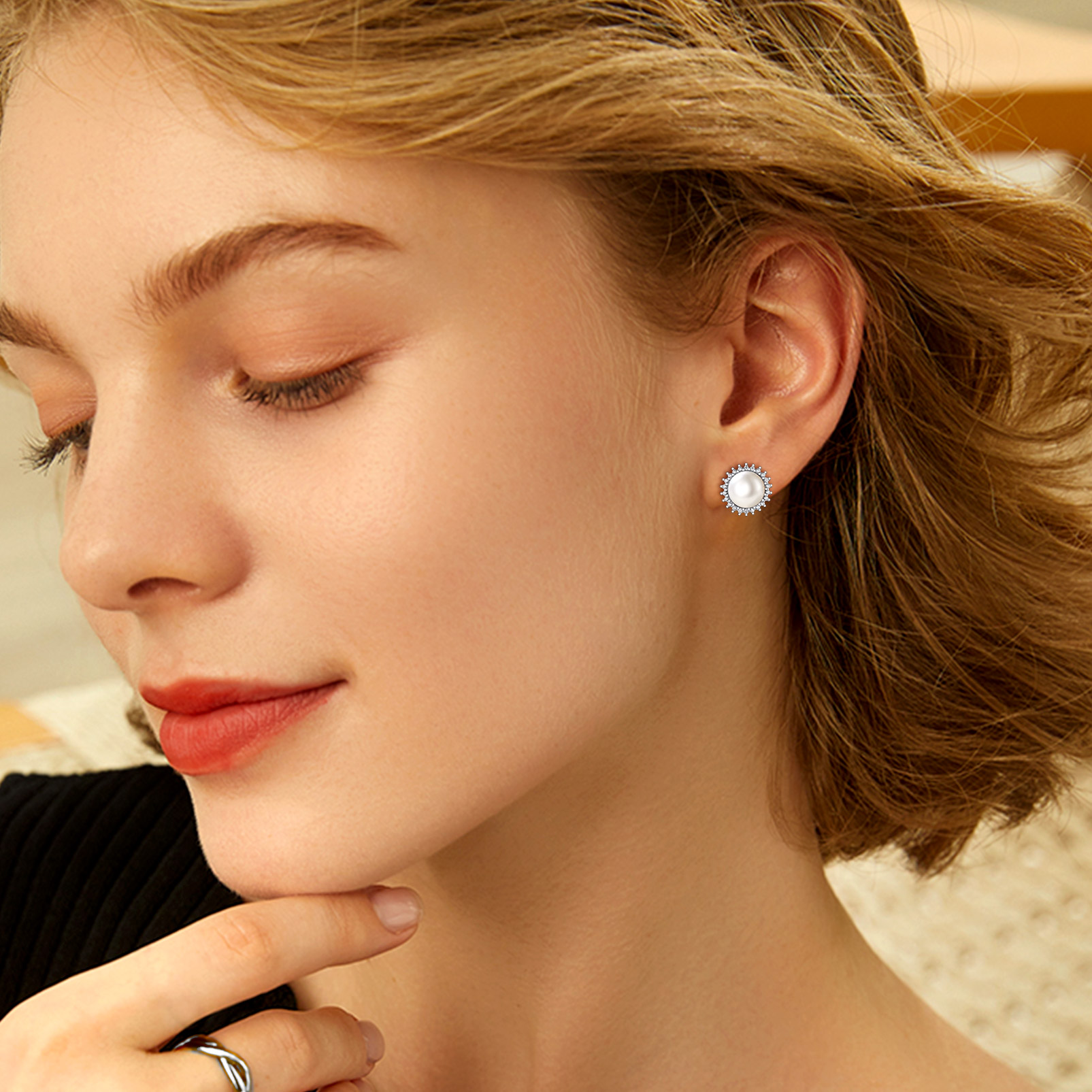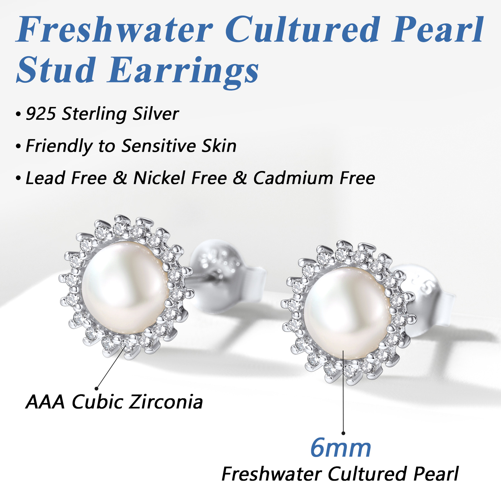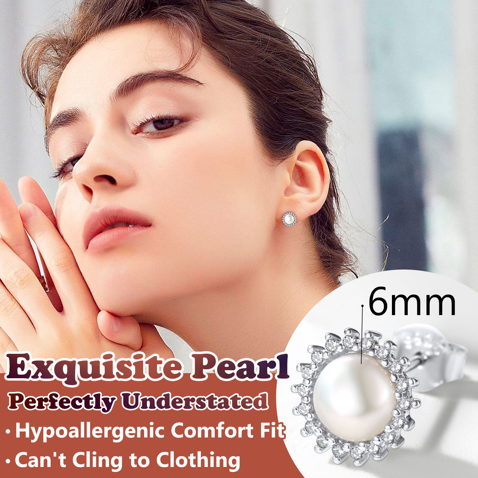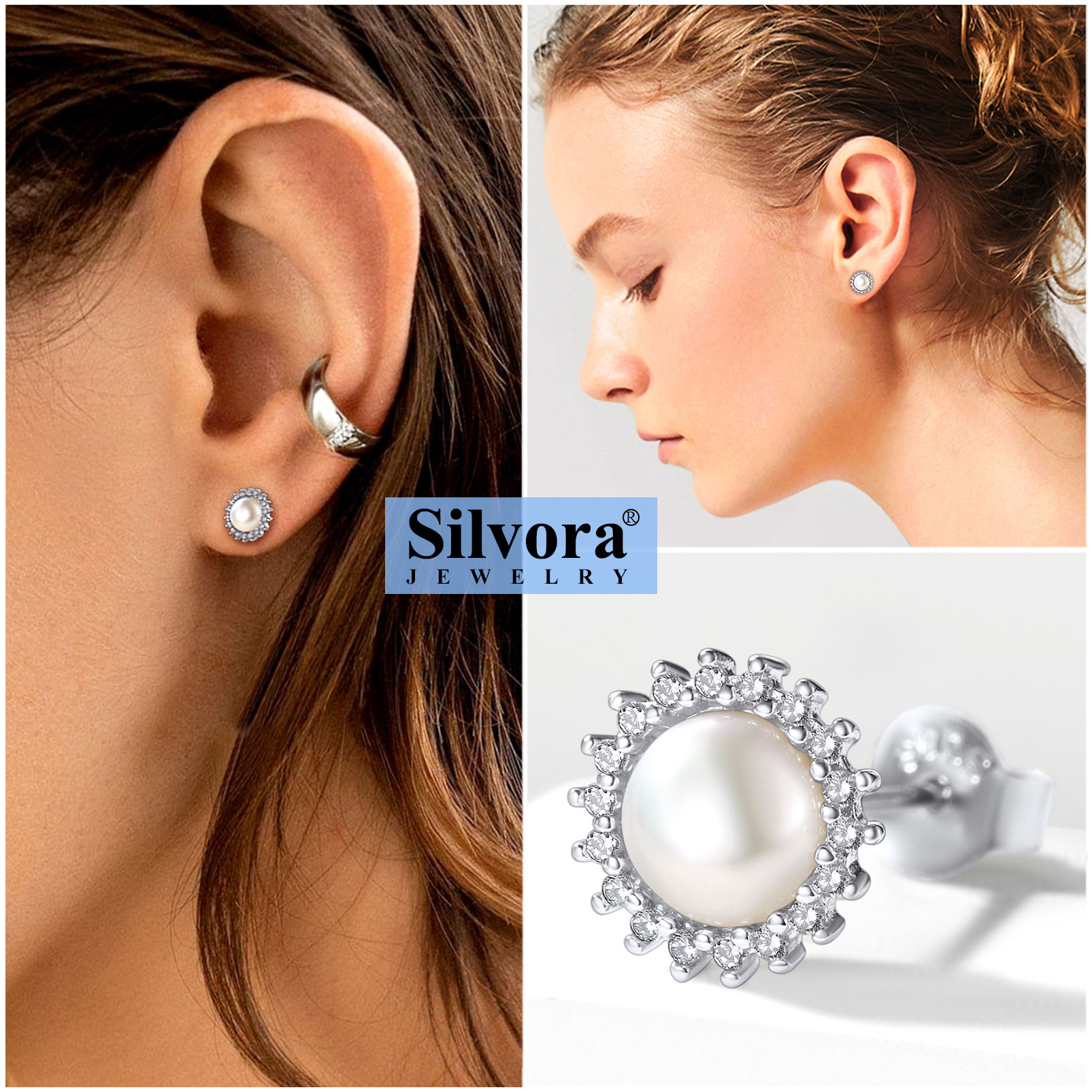 Plain Silver Earrings: 100% pure 925 sterling silver pearl stud earrings, white freshwater cultured pearls without harmful ingredients, nickel-free, lead-free and cadmium-free, perfect choice for sensitive ears. Hypoallergenic and comfortable.