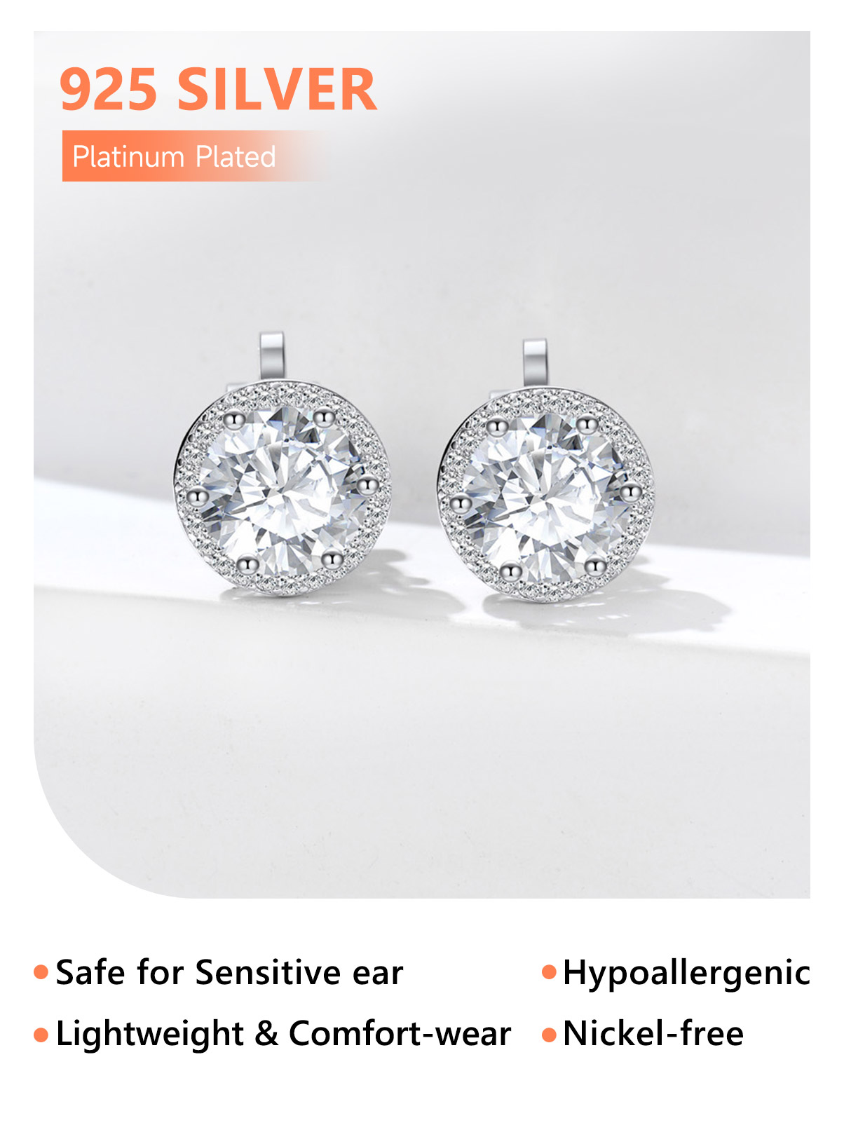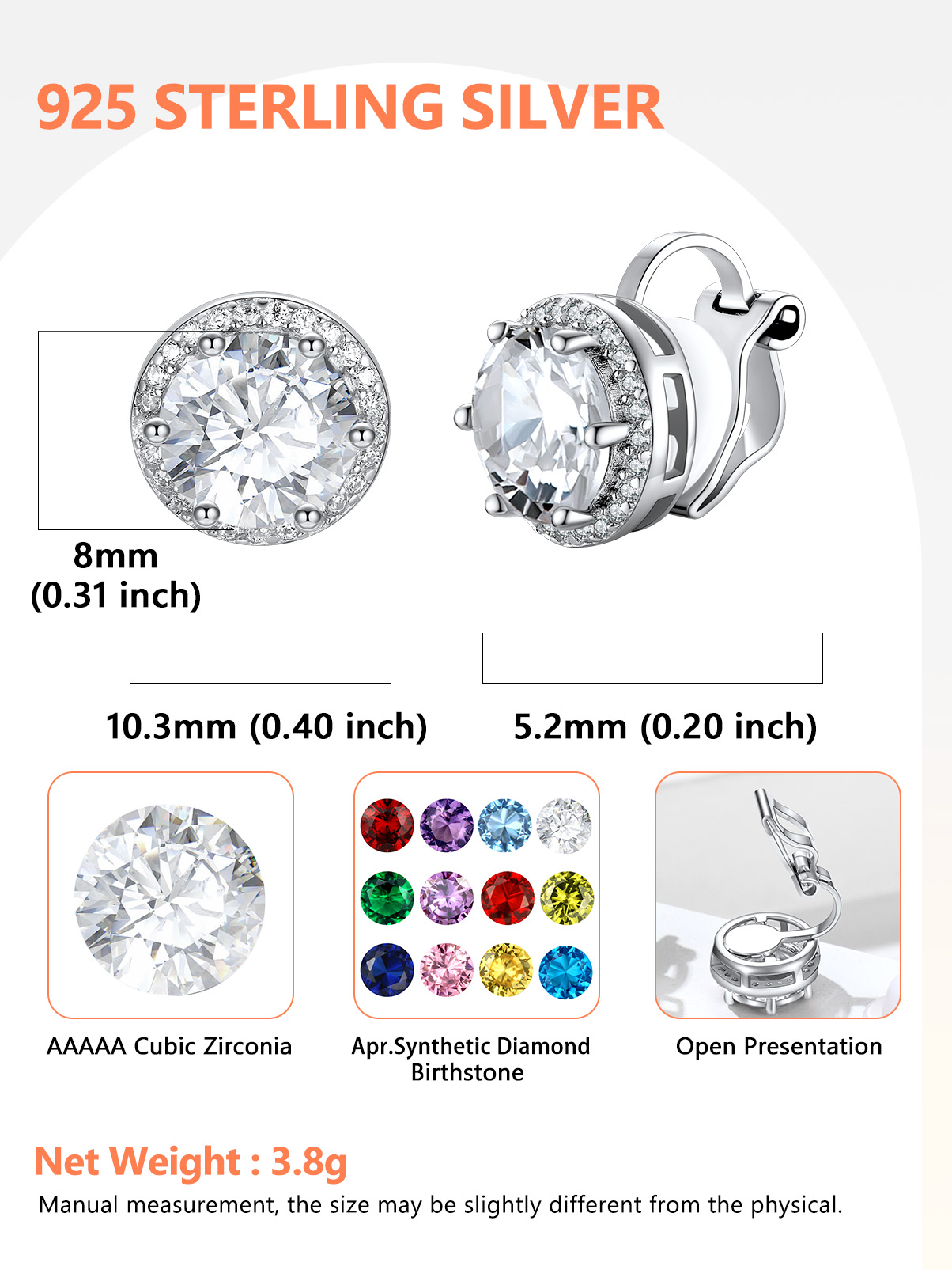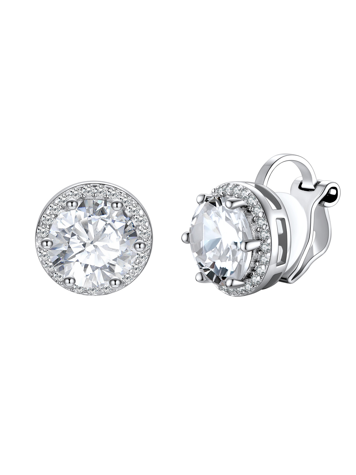 💖💖【Sterling Silver Clip On Earrings】Crafted in S925 silver with silver settings that complement the gemstones, round cubic zirconia is 8mm. With a classic and elegant design, these silver stud earrings can be worn with a variety of outfits and styles, suitable for both formal and casual occasions.