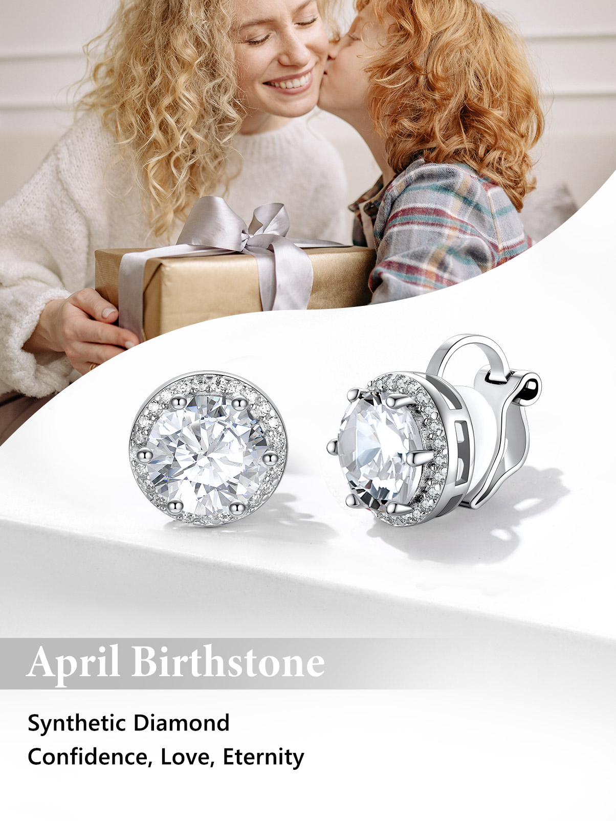 💖💖【Silvora No Piercing Birthstone Stud Earrings】Designed to be lightweight and easy to wear, with side grips that won't hurt if worn for long periods of time. The sparkling April Diamond birthstone ear clips are perfect for those without pierced ears or those who don't like traditional earrings