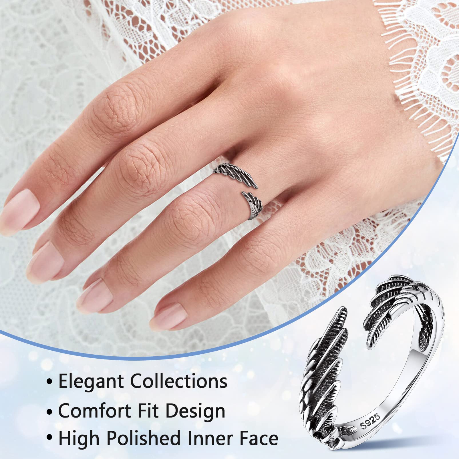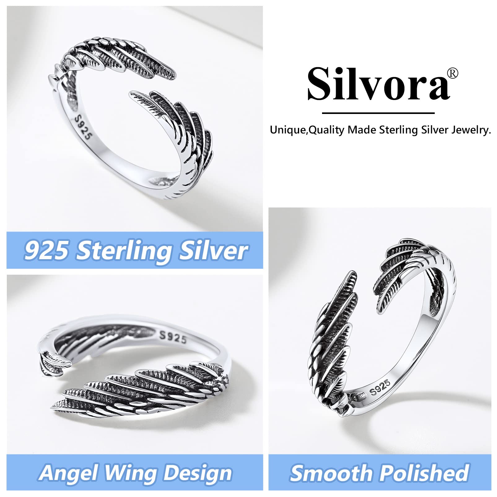 đăSilvora Adjsutable Angel Wing RingsăCould be wear at any time on any finger, simple plain design suitable for men and women, it could be making matching couple ring set or wedding/engagement/promise ring.