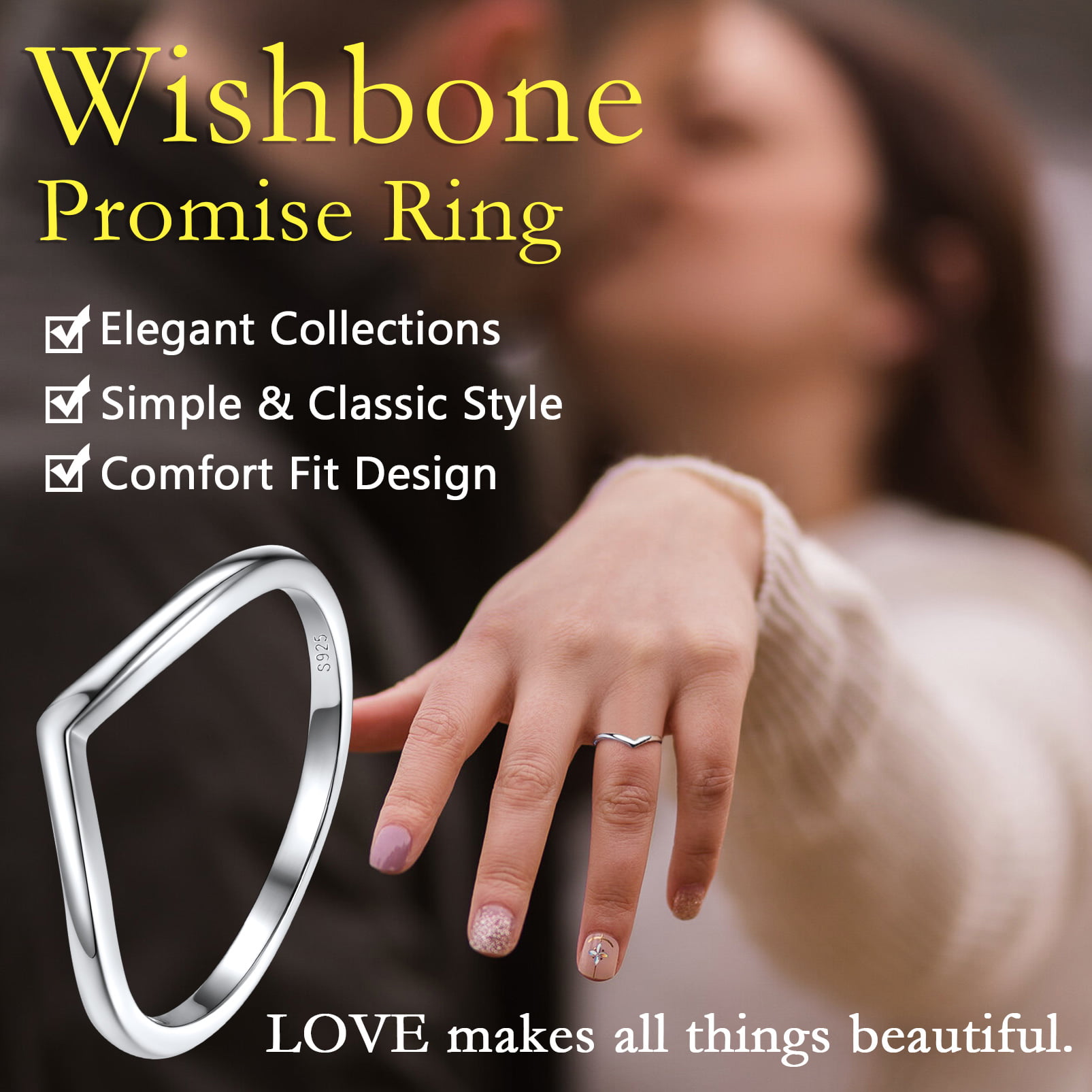 Silver Wishbone Rings: Sleek & understated, the beautiful clean lines of this wave ring need no adornment. Fits around wedding band/engagement rings nicely.