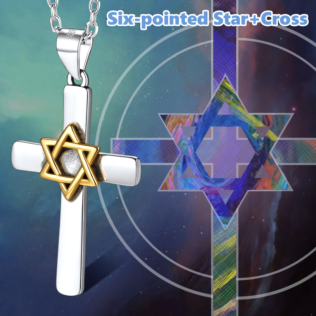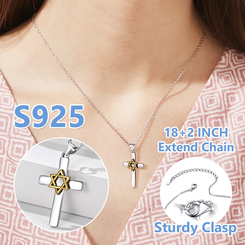 🎁🎁【Perfect Religious Amulet Jewelry Gift】Honor the bonds of family and friendship with this Star of David Cross necklace. Giving such a magnificently-designed necklace is a beautiful way to tell your beloved families how you feel about her; and the jewish sterling silver necklace will be of fine enough quality to last as long as your love for her/him.