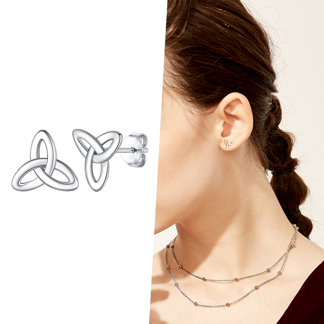 Silvora Trinity Celtic Knot Stud Earrings - Celtic knots are traditional things with distinctive Irish characteristics. As a symbol of strength, the Celtic knots are intertwined, and the endless silk rope is like a bond that connects us closely. The Celtic sign on the arms represent friendship, affection that cannot be broken
