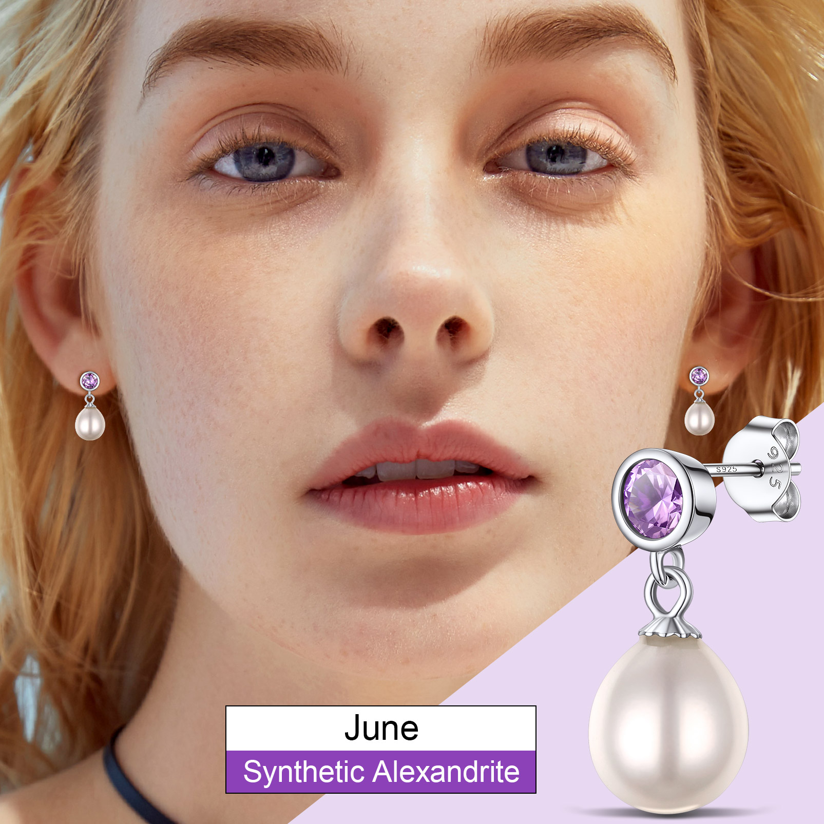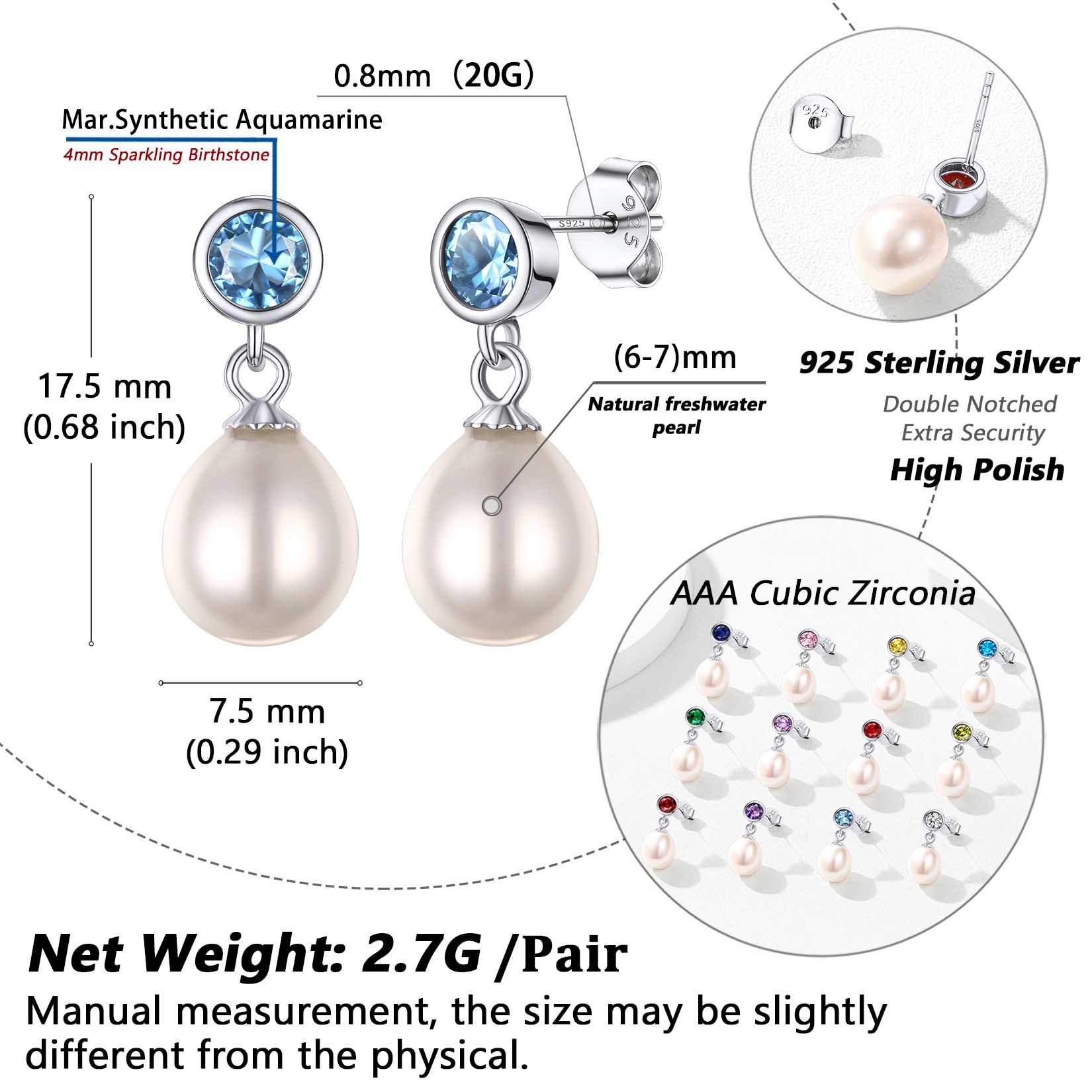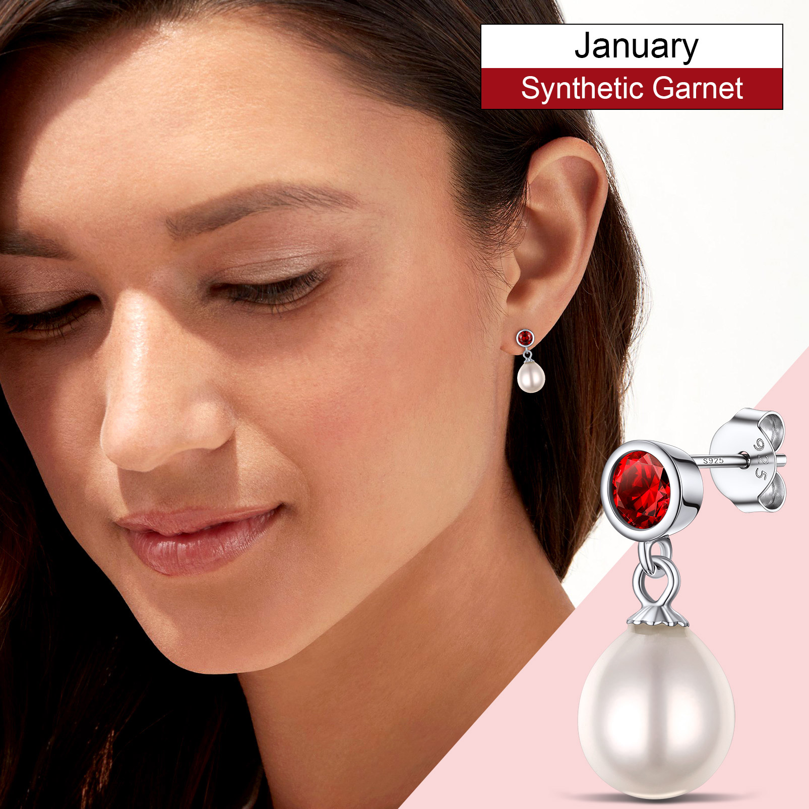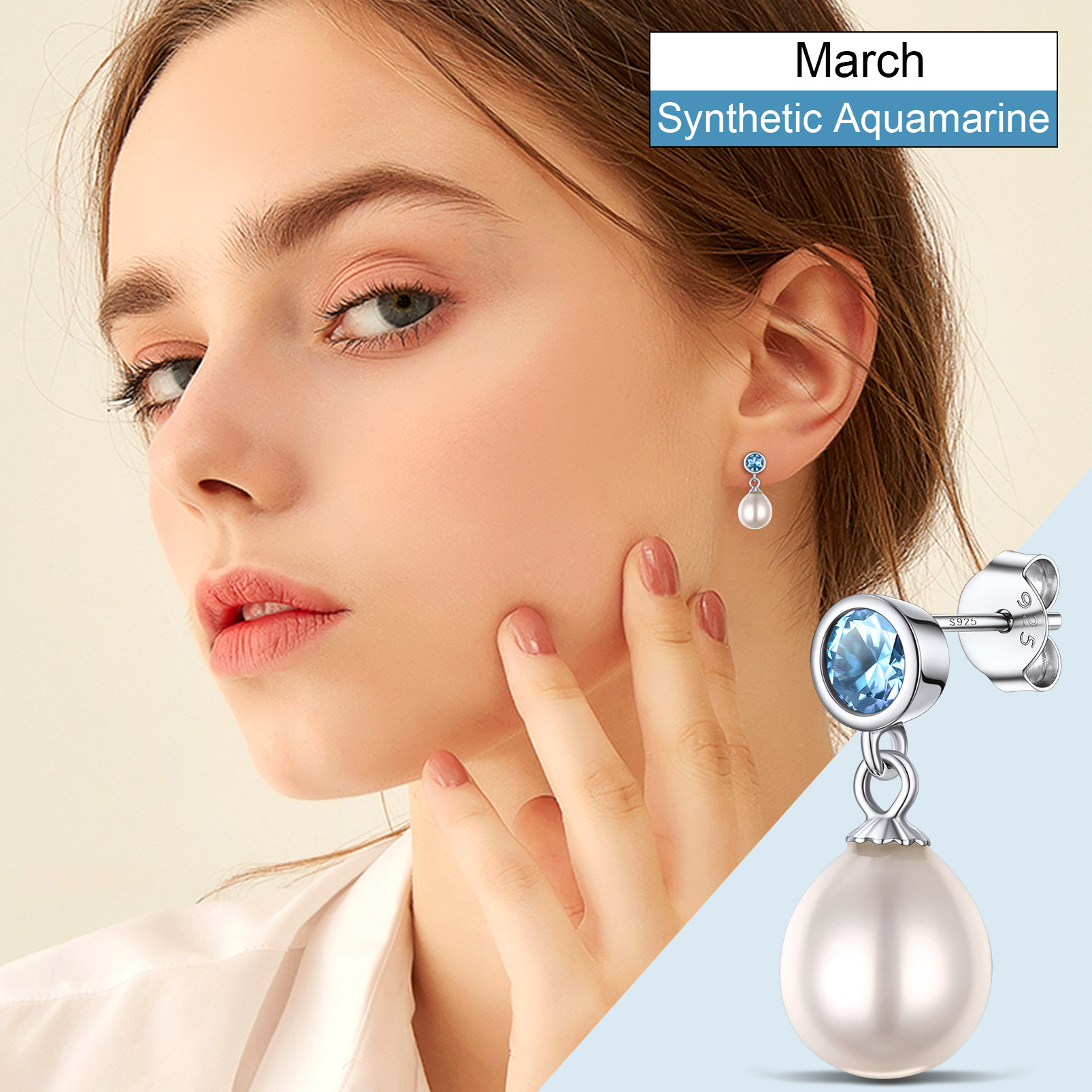 Elegant Sterling Silver Jewelry: Pearl Size: 6-7mm. Birthstone Size: 4mm. Weight in 2.7g. Durable and lightweight, nickel-free, lead-free, cadmium-free, safe for sensitive ear. Avoid contact with water.