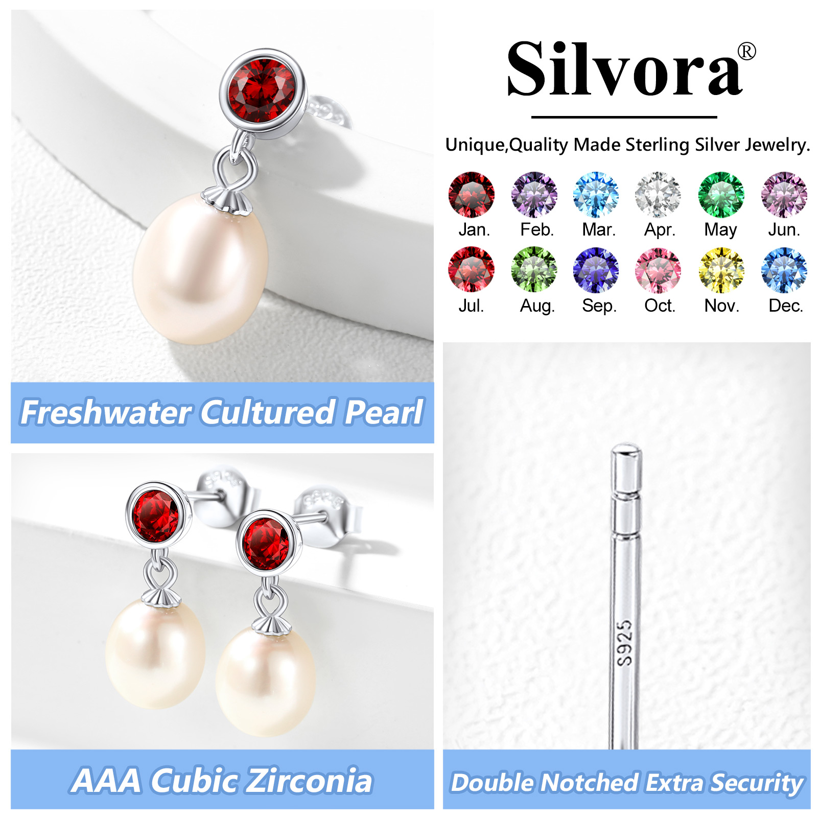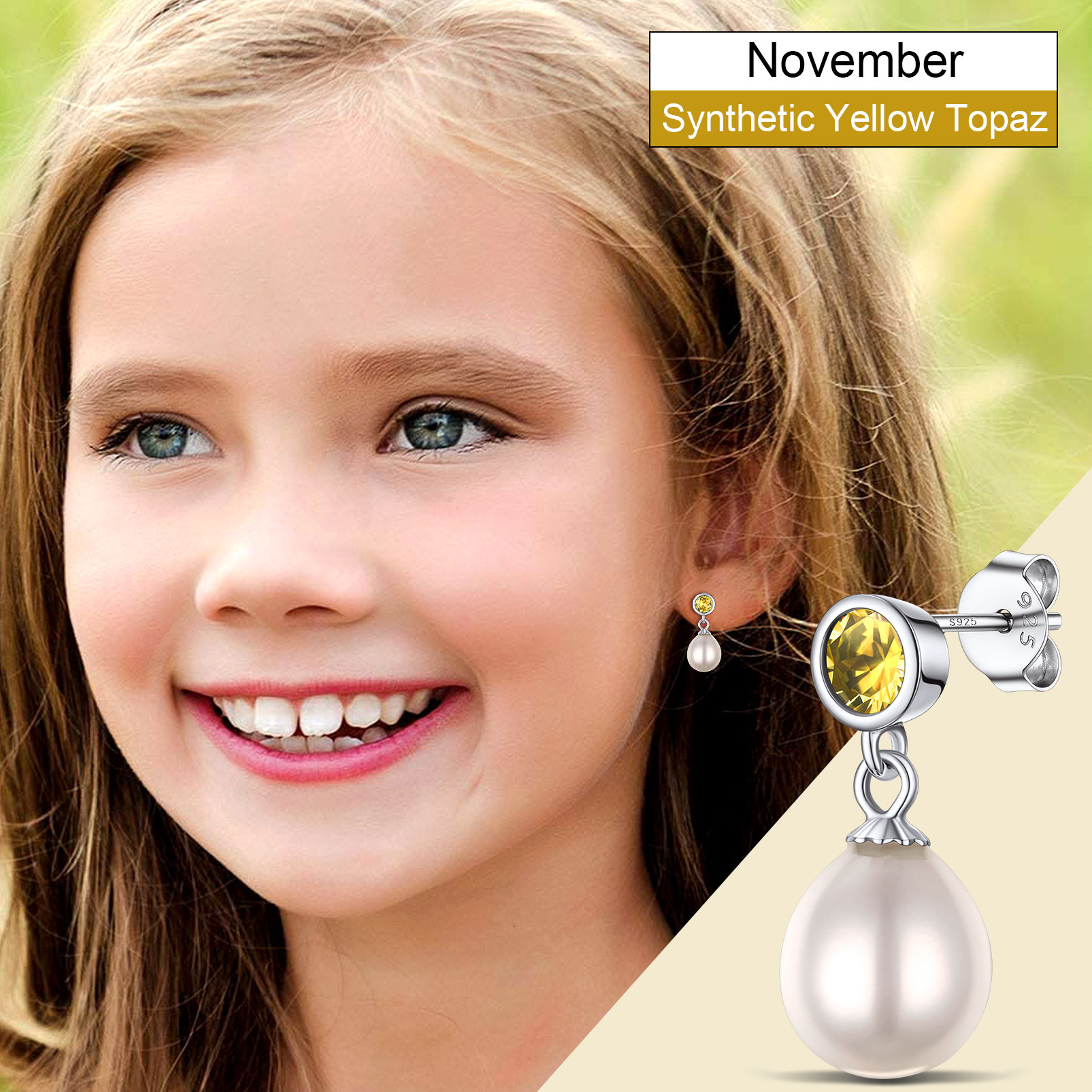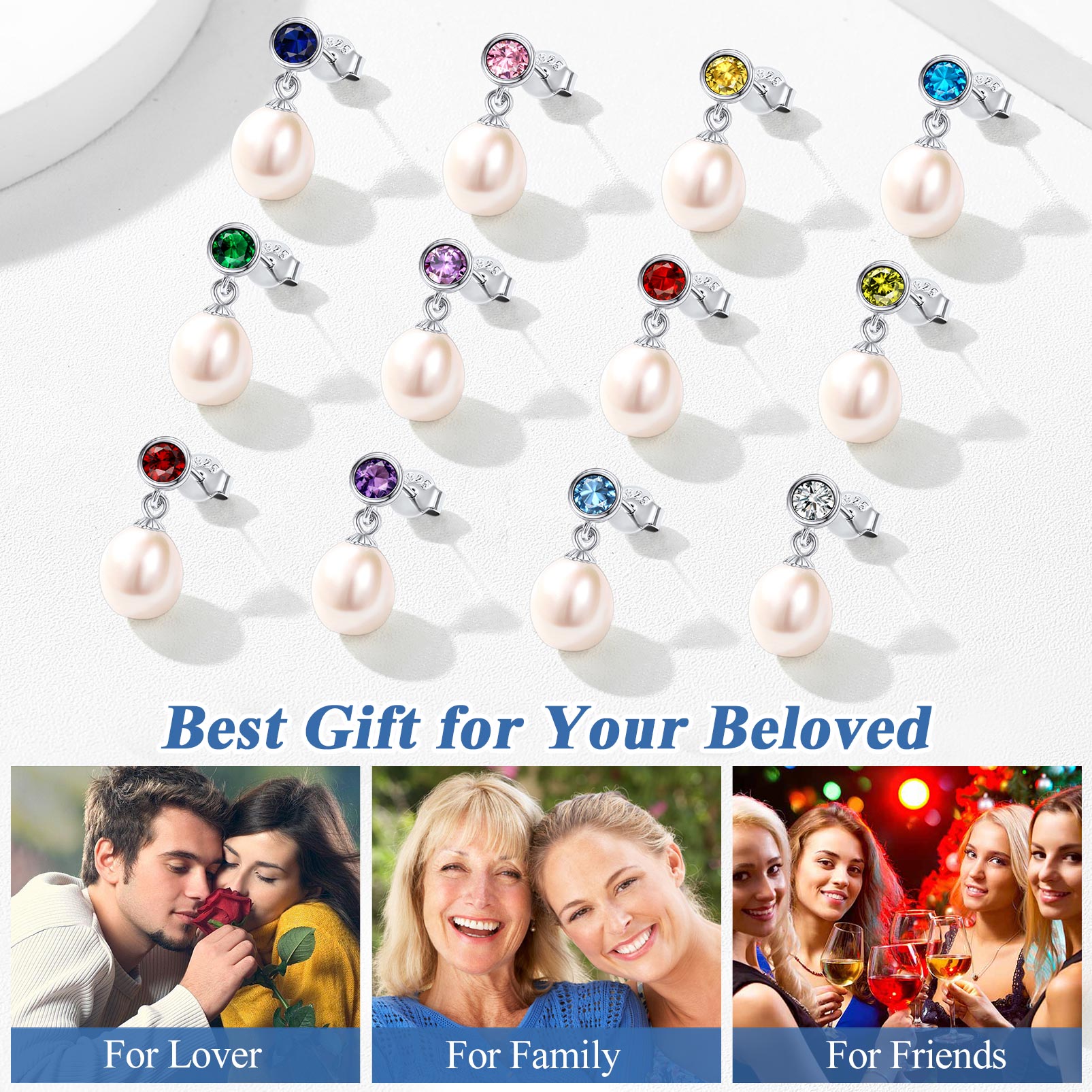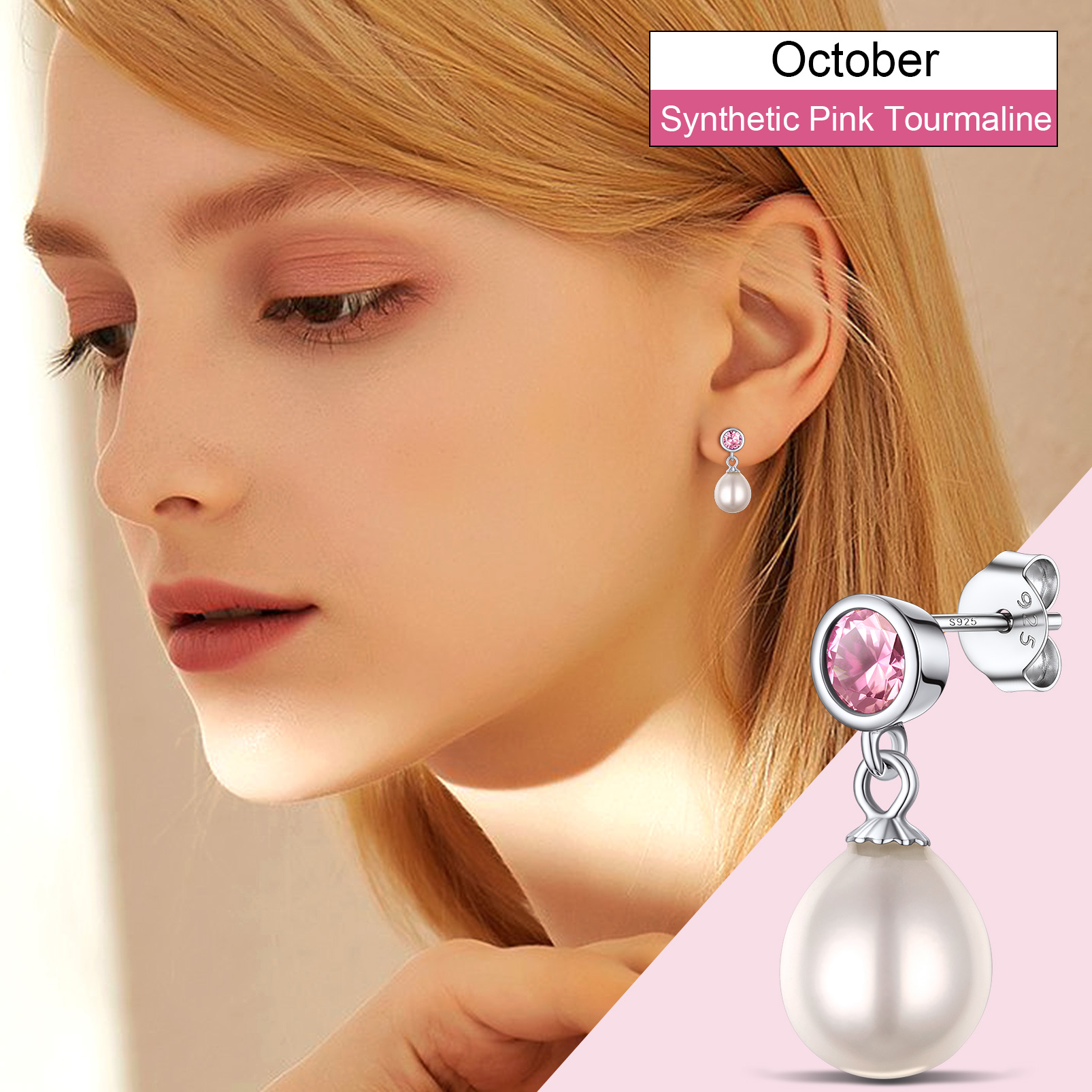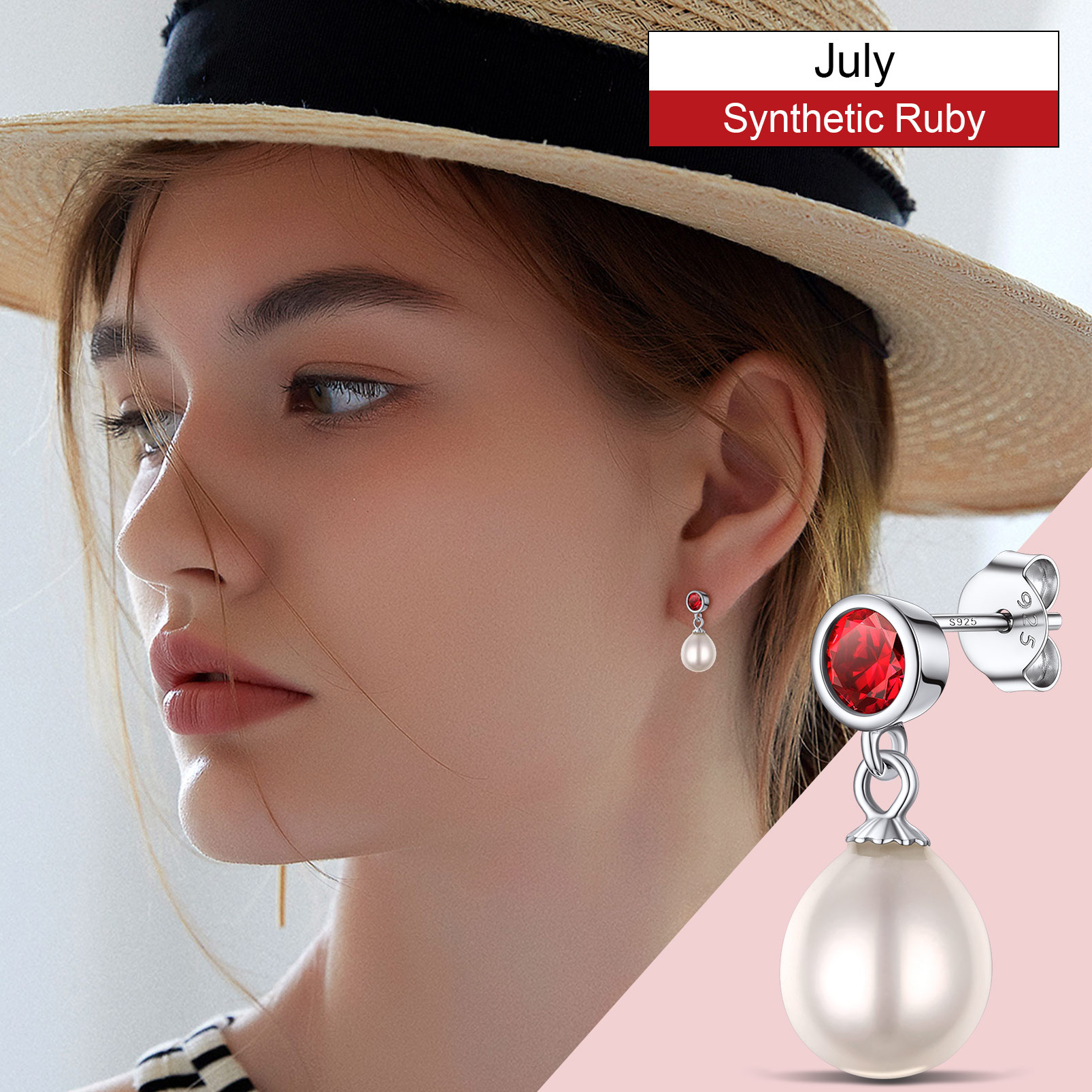 Elegant Sterling Silver Jewelry: Pearl Size: 6-7mm. Birthstone Size: 4mm. Weight in 2.7g. Durable and lightweight, nickel-free, lead-free, cadmium-free, safe for sensitive ear. Avoid contact with water.