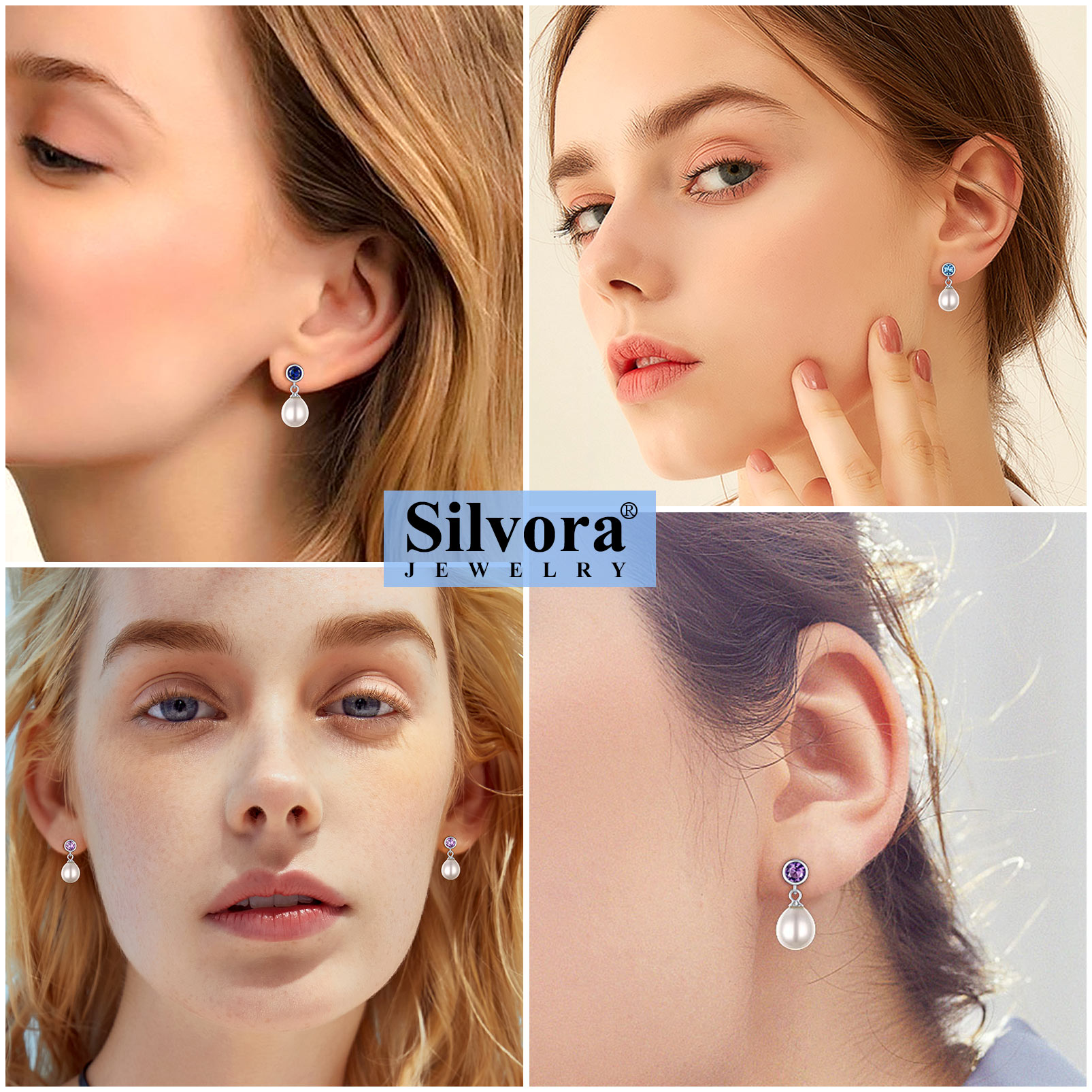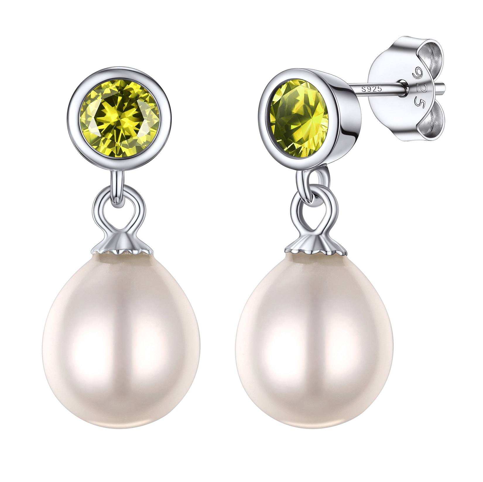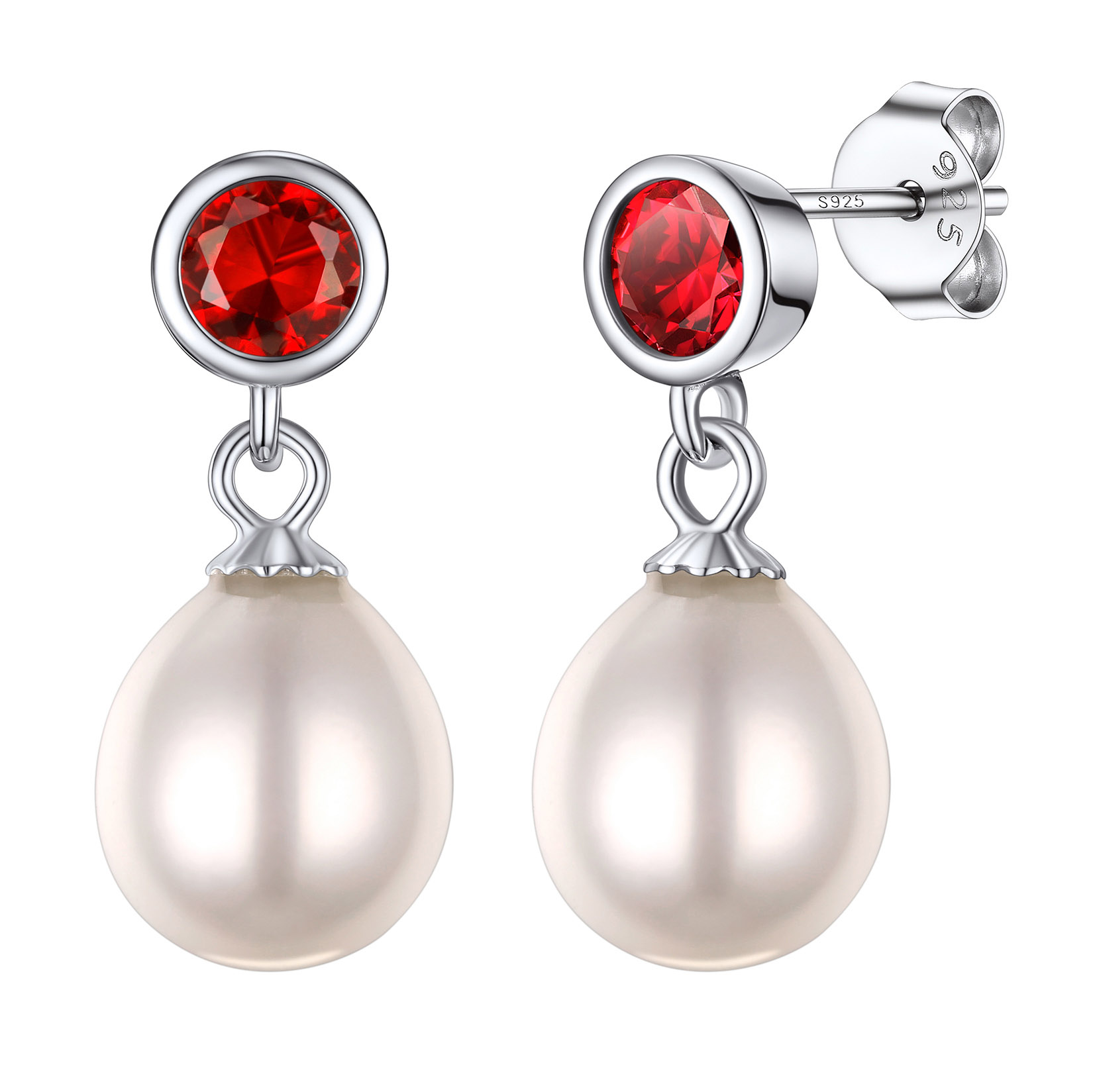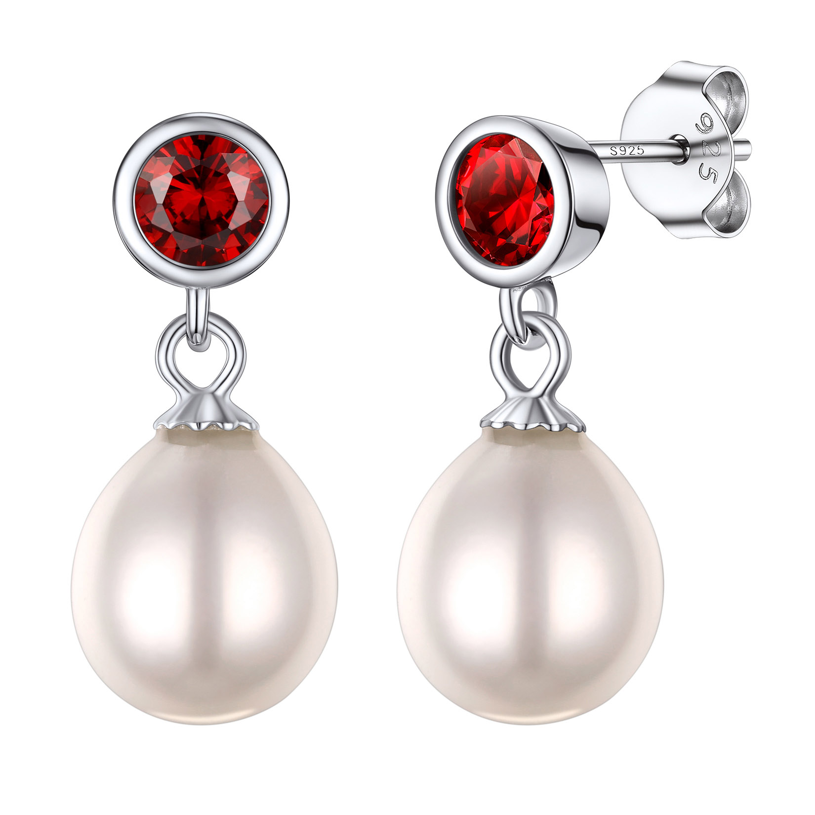 Elegant Sterling Silver Jewelry: Pearl Size: 6-7mm. Birthstone Size: 4mm. Weight in 2.7g. Durable and lightweight, nickel-free, lead-free, cadmium-free, safe for sensitive ear. Avoid contact with water.