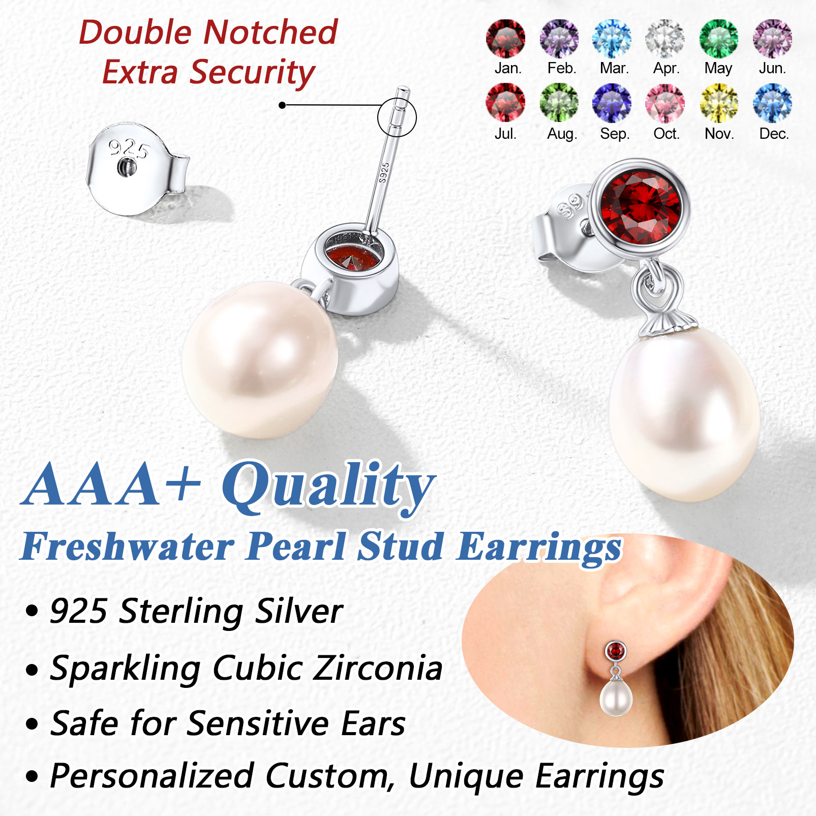 Pearl Stud Earring for Women Girls: These pearl birthstone earrings are made of 925 sterling silver and inlayed with AAA freshwater cultured pearl and shiny Cubic Zirconia , with excellent polishing and electroplating craftsmanship, which will make it look stable and sparkling.
